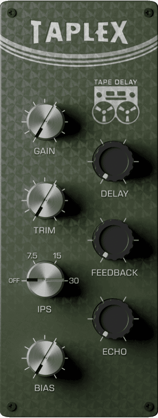 Tape delay emulation, that can switch between different tapes and operating points.The delay can be driven quite a bit if fed right.