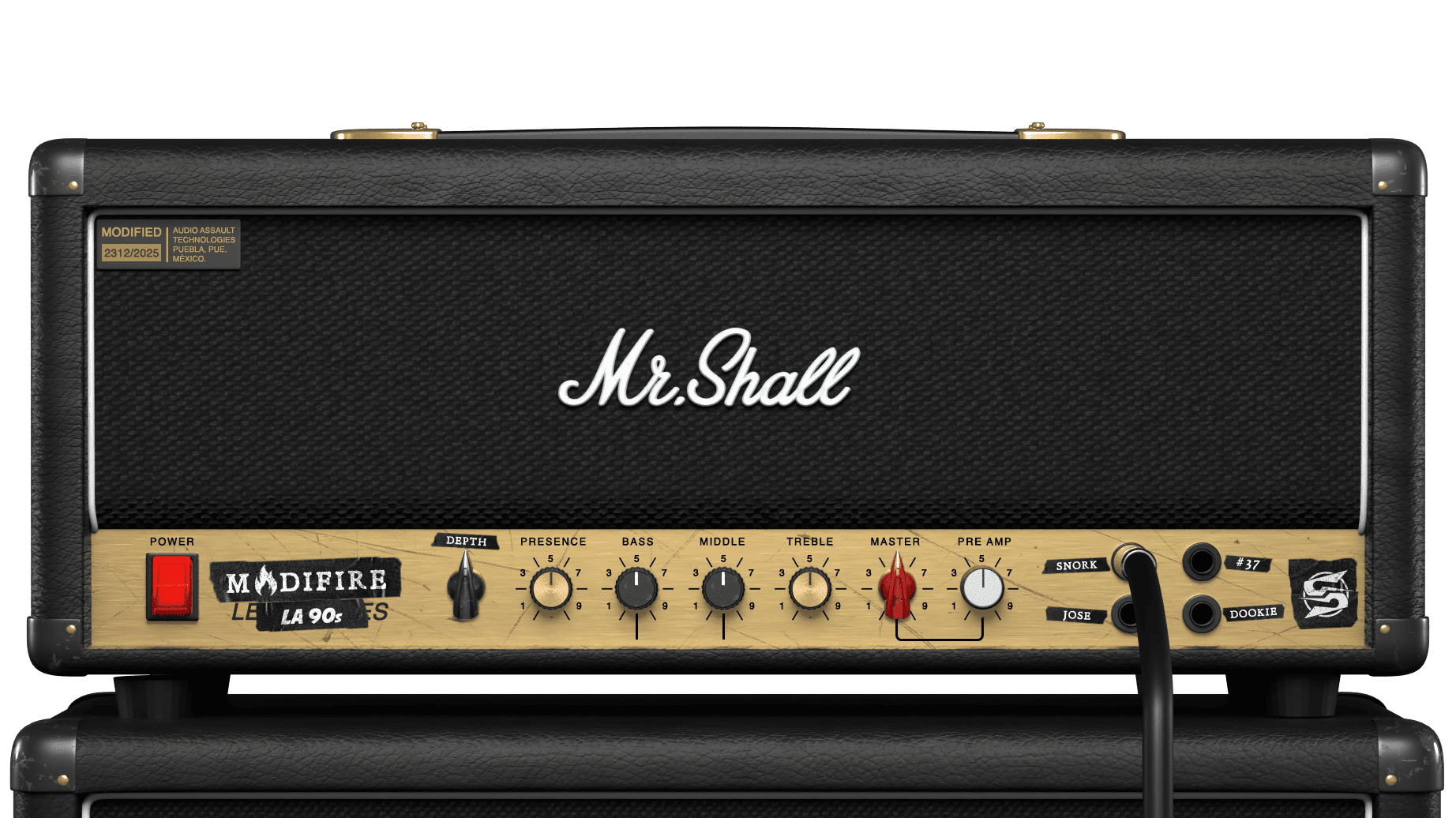 Based on a 4-input JCM800*, this amplifier includes four of the most famous JCM800 mods developed in Los Angeles.